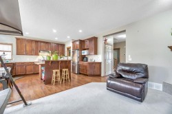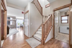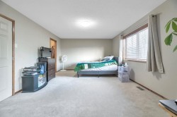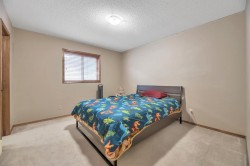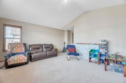 Amazing floorplan in this thoughtfully designed living space. This fully developed home offers just over 3200 sq. ft. of total living area, 5 bedrooms, and 3.5 bathrooms—ideal for growing families or those who love to entertain. Notable features include hardwood flooring, air conditioning, a cozy gas fireplace, and a vaulted bonus room that adds both space and architectural interest. Recent updates include new Class 4 shingles, gutters as well as partial siding completed in 2025.The main floor is functional and inviting, featuring a roomy foyer, a front home office/den, 2-piece powder room, main-floor laundry at the back entrance, and a spacious living room centered around the gas fireplace. The kitchen is well-appointed with an endless amount of cabinetry and counter space, central island, walk-through pantry, and a bright nook with access to the deck and backyard—perfect for everyday living and entertaining.Upstairs, you’ll find three generously sized bedrooms, a 4-piece bathroom, and a vaulted bonus room ideal for family movie nights or a kids’ retreat. The double door entry primary bedroom is complete with a walk-in closet and a full ensuite with corner soaking tub, glass enclosed shower and a sizable vanity.The fully developed lower level adds excellent flexibility with two additional bedrooms, a 3-piece bathroom, a comfortable family room, plus a lot more available storage. The front and back yard have great spaces for gardening and the front attached garage plus longer driveway has window for natural light as well as extra storage racks. Ideally located close to schools, parks, green spaces, shopping, transit, community centres, the library, theatres, and Vivo Place, this home offers exceptional convenience and lifestyle appeal.
