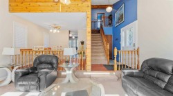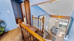 Charming Custom Home in a Prime Camrose Location. Welcome to this beautifully cared for 1976 custom home in one of Camrose's most desirable areas- just steps from schools, shopping and parks! The Main level features a sunken living room with wood burning fireplace, 2 piece bathroom, a bright dining area and private kitchen with a cozy eat-in nook.-perfect for morning coffee. Enjoy the convenience of main floor laundry and plenty of storage throughout. Upstairs, you'll find two spacious bedrooms and a full bathroom. The Primary is tucked away and offers privacy with it's own 2 piece bathroom and walk in closet. The lower level includes a large rec room, 3 piece bathroom and flex space with exterior access- great for guests, home office or hobbies. Outside, the fully fenced backyard provides room to relax and play, while the double detached garage, extra parking space and front carport add everyday convenience. Lovingly maintained and impeccably cared for, this home features newer windows and exterior doors throughout, adding comfort and efficiency. Ready for you to add your modern touch and make it your own!