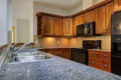 Two bedroom, two bathroom mountain retreat with amenities. Welcome to this beautifully appointed corner unit, offering breathtaking mountain views and a thoughtfully designed layout. Freshly painted throughout and with new carpet, the open concept kitchen and living area are highlighted by a cozy fireplace - perfect for relaxing after a day in the mountains. Two decks offer plenty of outdoor space to take in the stunning views. The spacious primary bedroom includes a walk-in closet and a private ensuite bath, a second bedroom, full bathroom and a dedicated laundry room complete the space. Enjoy the convenience of heated underground parking and a private storage unit . Located in a desirable, well-managed complex, residents have access to an impressive amenities centre featuring an indoor pool, indoor/outdoor hot tub, fitness room, theatre, games, rec room and guest suites. Just steps away from Canmore’s extensive network of hiking/biking trails. Note: the complex has a 40+ age restriction to reside.