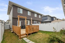LIVE IN A LAKE COMMUNITY | FORMER SHOWHOME | NO CONDO FEES | DOUBLE DETACHED GARAGE | WEST-FACING BACKYARDLooking to live in a lake community? This is your opportunity to enjoy everything Chestermere has to offer! Perfectly located just minutes from schools, the lake, shopping, ponds, dog park, transit, pathways, and quick access to Stoney Trail, this modern 1,243 sq ft home is move-in ready.Step inside and be impressed by the chef’s kitchen featuring upgraded stainless steel appliances, quartz countertops, a full-height tile backsplash, and a sleek stainless steel under-mount sink. The open-concept main floor boasts upgraded laminate flooring, a spacious living room, a dining area, and a convenient 2-piece bath.Upstairs you’ll find three bright bedrooms, each with a generous closet. The primary retreat offers a walk-in closet and private ensuite for your comfort.Your private west-facing backyard is designed for year-round enjoyment with a 15’ x 13’ wood deck, fenced yard, and concrete walkway leading to the oversized double detached garage. The charming front covered entry welcomes guests and adds curb appeal.Additional features include: a high-efficiency furnace, modern neutral décor, and stylish finishes throughout.This is the perfect opportunity to own in Chestermere with no condo fees and all the lifestyle benefits of a lake community.Don’t wait—call your friendly REALTOR® today to book your private showing!