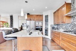 Welcome to this beautifully upgraded home offering over 2,600 sq ft of above-grade living space, situated on a spacious corner lot in the heart of Chestermere. This premium lot offers extra yard space, enhanced curb appeal, and added privacy—perfect for families who value outdoor living. The main floor features an open-to-above living room filled with natural light, a full bathroom, a mudroom, a versatile office that can be used as a bedroom, a spacious dining area, and a stunning upgraded kitchen with a large island ideal for casual meals and entertaining. Upstairs, you’ll find four well-appointed bedrooms, including two luxurious master suites each with their own en-suite and walk-in closet, plus two additional bedrooms, a full bathroom, a convenient laundry room, and a generous bonus room perfect for relaxing or family time. The fully finished basement offers a separate entrance, a large recreational area, two additional bedrooms, and a full bathroom—ideal for extended family living or rental potential. Completing this home is a triple car garage and an expansive backyard. Located close to schools, parks, Chestermere Lake, shopping centres, restaurants, daycares, and the public library, this home combines space, function, and an unbeatable location in one of Chestermere’s most sought-after communities.