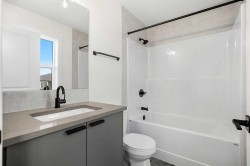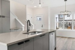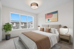 Welcome to the NEWLY BUILT #1206, 525 RIVER HEIGHTS DRIVE, a beautiful townhome that includes a NEW HOME WARRANTY and could offer a GST REBATE FOR QUALIFIED BUYERS. Enjoy a LARGE FENCED BACKYARD backing WEST that provides the feel of a single-family home. Step inside to a bright, airy main floor featuring a MODERN OPEN-CONCEPT LAYOUT that is both stylish and functional. At the heart of the home is a SLEEK CONTEMPORARY KITCHEN with QUARTZ COUNTERTOPS, MATTE BLACK HARDWARE, WHIRLPOOL STAINLESS STEEL APPLIANCES, SOFT-CLOSE CABINETRY, and a CENTRAL ISLAND WITH SEATING, ideal for casual dining or entertaining. The kitchen flows seamlessly into the dining and living areas, where LARGE WINDOWS and LUXURY VINYL PLANK FLOORING create a bright and inviting atmosphere. A POWDER ROOM and a DEDICATED MUDROOM off the back entrance provide added convenience and organization for daily living. Upstairs, the SPACIOUS PRIMARY BEDROOM includes a WALK-IN CLOSET and a PRIVATE 3-PIECE ENSUITE. Two additional bedrooms offer flexible space for children, guests, or a home office. A FULL 4-PIECE BATHROOM and a CENTRALLY LOCATED LAUNDRY AREA make busy routines easier and more efficient. The UNFINISHED BASEMENT provides exciting potential for future development, additional storage, or a customized space that fits your lifestyle. Designed with comfort and sustainability in mind, the home includes DUAL-PANE WINDOWS, a HIGH-EFFICIENCY HVAC SYSTEM, and an HRV UNIT for consistent comfort and performance year-round. Outside, you can relax on your PRIVATE REAR PATIO or enjoy a quiet morning on the COVERED FRONT PORCH. Two ASSIGNED PARKING STALLS add convenience, and with LANDSCAPING AND SNOW REMOVAL INCLUDED, this property offers truly LOW-MAINTENANCE LIVING. Located in the well-established community of RIVERSONG, you are just minutes from SCHOOLS, SCENIC WALKING PATHS, PARKS, CO-OP and the SPRAY LAKE SAWMILLS FAMILY SPORTS CENTRE. QUICK ACCESS TO HIGHWAY 1 and 22 makes it easy to reach CALGARY or escape to the MOUNTAINS for a weekend getaway. With QUALITY FINISHES, a SMART LAYOUT, and a VIBRANT NEIGHBORHOOD, this home is designed for modern, comfortable living. CONTACT to view the home TODAY as this home is MOVE IN READY! The FREESTONE SHOWHOME AT 525 RIVER HEIGHTS DRIVE is open on WEEKENDS from 12 – 5pm!