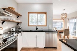 Perched on a hill and just steps from the pathway system, this beautifully renovated home is the kind of place that immediately feels right. Sunlight pours through large windows on both levels, filling the home with warmth and creating a space that feels open, calm, and easy to live in.The main floor is where daily life naturally gathers. The kitchen has been thoughtfully updated with refreshed cabinetry, new tile backsplash, open shelving, and modern hardware, blending style with function. Refinished hard wood floors, updated lighting, and fresh paint throughout give the home a cohesive, move-in-ready feel. The living room is anchored by a stunning natural stone fireplace that stretches to the ceiling, creating a space you will love coming home to.Upstairs, the fully renovated main bathroom and ensuite feel spa-inspired with custom tile work including shower niches, modern cabinetry, and timeless finishes. Even the powder room has been refreshed, reflecting the care that has gone into every detail of this home.Downstairs offers incredible flexibility. A brand new, beautifully finished two-bedroom legal walkout suite with its own furnace and new appliances creates space for extended family, guests, or an excellent mortgage helper. Whether this level supports your lifestyle or your long-term plans, it adds meaningful value and opportunity.Outside, the southwest-facing backyard feels private and peaceful, surrounded by mature trees and natural landscaping. Enjoy sunny afternoons on the large deck with gas BBQ line, relax under the metal gazebo, tend to the raised garden beds, or let the dog roam freely in the dedicated run. In the front yard, new sod was laid, the deck refurbished with new boards and modern railing installed all to enhance your curb appeal, while updated exterior lighting adds both charm and function.Practical upgrades complete the picture, including an electric vehicle plug-in, sump pump, water softener, updated door hardware, newer appliances, Nest thermostat and doorbell and security cameras.This is more than a house. It is a home that has been cared for, improved, and thoughtfully prepared for its next owners. All that is missing is you.
