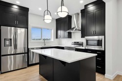 Welcome to the Luna model in Cochrane’s Fireside community, offering 1,528 sq. ft. with 3 bedrooms and 2.5 bathrooms. The main floor is designed with an open layout that connects the great room, dining area, and kitchen. In the kitchen you’ll find quartz countertops, Chantilly Lace shaker cabinetry, a Blanco Silgranit sink in Truffle, Boardwalk matte white backsplash, and a Mistral island that provides both workspace and seating.Upstairs, the primary bedroom includes a walk-in closet and ensuite. Two additional bedrooms, a full bathroom, and upper-level laundry complete this floor. Interior finishes include maple-stained railing with nickel spindles, Cozy White luxury vinyl plank, Off Shore carpet, and Micabella LVT. This home includes a side entry with basement rough-ins, a 9’ foundation, and gas lines to the range and BBQ. A gravel parking pad is also included.Fireside is a well-established Cochrane community with two schools, nearby shops and services, playgrounds, and an extensive pathway system. It also offers quick access to Highway 22 for commuting into Calgary or exploring the mountains. Photos are representative, colours and finishes may vary. *Area size was calculated by applying the RMS to the blueprints provided by the builder.