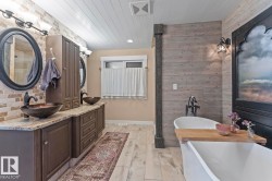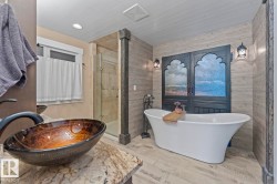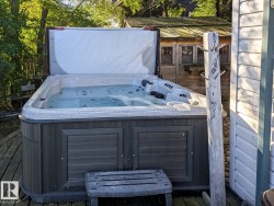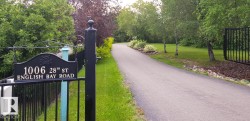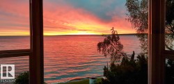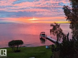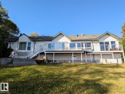 A rare find! Stunning 1.09 acres of Lakefront Living w/ city services! Large bungalow style home is designed to capitalize on the panoramic lake views. Attached single garage & detached double heated garage. Main floor features living room with hardwood flooring, gas fireplace with faux rock accents & vaulted ceilings. Central air. Formal dining and massive kitchen with stainless steel appliances, soapstone counters,eat up island and windows galore, overlooking outdoor decks and unobstructed lake views. 3 bedrooms on main level including primary w/ renovated spa-inspired ensuite dual sinks, heated floors,stand-up shower soaker tub & walk in closet. Seperate side entrance would make a great in law suite(hook ups plumbed in). Main floor laundry w/wash basin.Fully developed heated basement features large rec room, gym, 4th bedroom, full bathroom. Pristine property is fully fenced/gated and features mature trees, gardens and the lake w/ 137’ of sandy beachfront. Dock & boat lift included! Shingles(2018).
