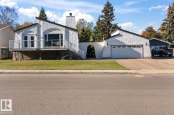 You've always wondered what this stucco spanish-style bilevel looks like and now you can know! Very well built and situated 1/2 block from the beach on a massive lot with back alley access. This home has had various upgrades over the years from a new kitchen, shingles, windows, duradeck, main bath, sprinkler system and more!A n exceptional sized living room with a real wood fireplace, separate dining room and custom kitchen with Cambria counters. 3 bedrooms up and 2 down with a secondary family room. Recently the garage has been insulated and new gas heater has been installed. Quaint courtyard area attached to the breezeway between home and garage for you to entertain at with Natural Gas BBQ hook-up. One of Cold Lake's unique and exceptional properties!