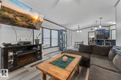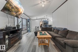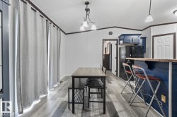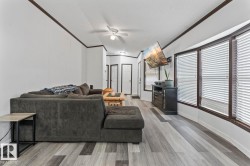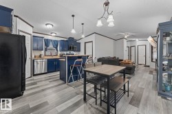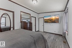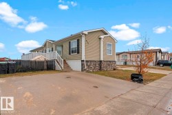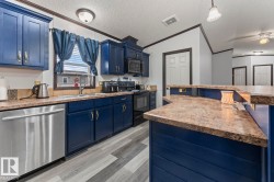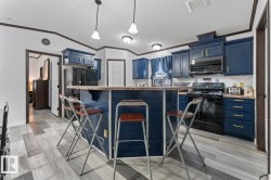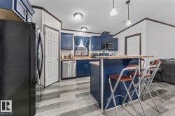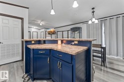 Affordable Home Ownership Starts Here! Step inside this beautifully renovated 3-bedroom, 2-bath mobile home, where comfort meets style in an open concept design. Home features a spacious kitchen, with freshly painted cupboards, a corner pantry, and a raised two-tier island—perfect for entertaining—plus the convenience of the laundry room just off the kitchen. The primary bedroom is truly a retreat, offering a massive layout, walk-in closet, and luxurious 5-piece ensuite complete with a corner soaker tub, separate shower, and double vanities. Fresh touches throughout the home include some new vinyl plank flooring, paint, patio door, giving the space a clean and modern feel. Whether you’re a first-time buyer or looking to downsize, this move-in-ready home offers incredible value. Stop renting and take the first step toward affordable home ownership!