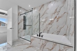 TRIPLE CAR GARAGE HOME. Fully upgraded & Custom. Main floor bedroom & Main floor full bathroom. SPICE KITCHEN. BEAUTIFUL kitchen truly a masterpiece, unique Centre island. Living area with custom wall, really a centerpiece , Dining area with access to deck. Staircase leads to upper level. Bonus room on upper level. Gym/Big Bonus room/Den Area on upper floor. Huge Primary br with feature wall, 5pc fully custom ensuite & W/I closet. Two more bedrooms with common bathroom. Laundry on 2nd floor. Unfinished basement waiting for your personal touches.
