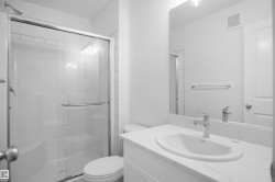 NO CONDO FEES and AMAZING VALUE! You read that right welcome to this all new townhouse unit the “Iris” Built by StreetSide Developments and is located in one of Edmonton's newest premier south west communities of Keswick Landing. With almost 1080 square Feet, it comes with front yard landscaping and a single over sized attached garage, this opportunity is perfect for a young family or young couple. Your main floor is complete with upgrade luxury Vinyl Plank flooring throughout the great room and the kitchen. The main entrance/ main floor has a good sized den and access to the garage. Highlighted in your new kitchen are upgraded cabinets, upgraded counter tops and a tile back splash. The upper level has 2 bedrooms and 2 full bathrooms. This unit is move in ready!