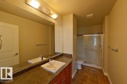 This professionally managed beautiful Ventana Woods townhouse is located in the one of the best neighbourhood and offering 1569 sq ft above grade area, 2 master ensuite bedrooms, central air conditioning, 9' ceiling large living room with a lot of air and sunshine, hardwood floor through the main floor. Bright kitchen with island bar, chef corner pantry, back splash, cozy dinning beside the window viewing over the pond across the street, convenient laundry on the upper level with floor drain. Double attached garage, gust/recreational room at the below level. Back door to the outdoor porch with barbecue gas and water pipe ready to enjoy summer evenings. Very convenient to access to LRT, highways, airport, schools, shopping and all amenities.