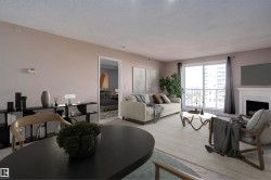 INCREDIBLE LOCATION near Government Station/River Valley - Welcome to Grandin Manor! Views of the river valley, high level bridge, city views & more - south & west facing covered patio. With just over 1044sqft of living space - 2 Bedrooms - 2 Bathrooms - large storage area - 2 Parking Stalls - 1 underground & 1 surface – this is a well-maintained condo that feels like a complete home! Entering the condo you will love the open concept feeling. The spacious kitchen has ample cabinet & counter space & a large dining area. Open to the kitchen is the living room with floor to ceiling windows & gas fireplace. Step outside through the patio doors & fall in love with the view & storage! Back inside the primary bedroom is a great size with double closets & a 4-piece ensuite. The 2nd bedroom is a great size with large windows as well to enjoy the view. A large storage/laundry room & 3-piece 2nd bathroom complete this condo. Close to all amenities, river valley walking trails, , shopping & cafes.