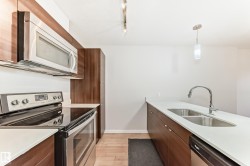 Welcome to this lovely ground floor unit in Eaux Claires. Park right outside your patio and stroll into this attractive building. Inside you'll find the generous master bedroom with walk-through closet and full bathroom. The secondary room can either be your office or second bedroom. Quartz countertops and stainless steel appliances compliment the kitchen that offers plenty of space and storage. In-suite laundry is just another highlight of this place. Living here puts you within minutes of public transit, Save on Foods, medical clinics, and the Anthony Henday. The walls have just been freshly painted and new smoke detectors installed. Welcome home!
