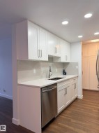Welcome to this like-new, two-bedroom suite in the desired south Edmonton community of Keheewin. right across from the Keheewin Park with ample of green space. With over $45,000 in renovations, this meticulously maintained unit is truly move-in ready. Step inside to discover a freshly painted interior boasting brand new vinyl plank flooring and contemporary light fixtures throughout. The heart of the home is the fully upgraded kitchen, featuring sleek new contemporary cabinets, pristine quartz countertops, new sink & fixtures, and four brand-new appliances. New ceramic tiles and fixtures in the bathroom; in-suite laundry equipped with new stacked washer and dryer. Enjoy outdoor living and extra storage via the sliding door to your large private patio; underground heated parking provides comfort and extra security. Building is quiet with adults only, very well taking care with full time caretaker onsite; Close to YMCA, LRT and public transportation with easy access to Anthony Henday Drive.