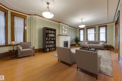 An exceptional blend of historic character & modern luxury in one of Edmonton’s most cherished neighbourhoods. Situated on a rare 1/3 acre ravine lot in Historic Westmount, this grand 1912 residence has been lovingly modernized & has so much to offer. This impressive 6 bedroom, 4 bathroom estate has been extensively renovated. The main floor features a regal living room with a beautiful fireplace, & spacious dining area - great for entertaining. Next is the fully renovated, south-facing chef's kitchen with breakfast nook - offering deck access & unobstructed river valley views. The floor is complete with a full bathroom & bedroom/office. Upstairs is the primary suite featuring a fireplace, walk-in closet and spa-like ensuite w/ heated floors & clawfoot soaker tub. Two more bedrooms, laundry, full bath & deck complete the level. 5th bedroom or flex room with excellent storage on 3rd level. Fully finished walk out basement with heated mudroom & full bath, bedroom, bonus room w/ fireplace, attached garage!