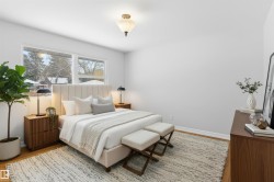 Discover the perfect blend of timeless character & contemporary updates in this truly delightful bungalow, nestled on an spacious lot along a tree lined street in Grovenor. The Living & Dining room are highlighted by gleaming hardwood floors, & coved ceilings. The eat-in kitchen features granite counters, tile backsplash, rich cabinetry, & sleek stainless steel appliances. 3 ample bedrooms & a 4pc bathroom complete the main level. The fully finished basement adds even more living space with a generous rec room, cozy fireplace, Den, Bonus Room, a 3pc bath, & a laundry (New Washer). Modern comfort upgrades include a newer furnace & hot water tank. The exterior has also been refreshed with upgraded insulation, vinyl siding, updated soffits, fascia, & eavestroughs. The beautifully landscaped and fenced backyard offers a large deck, excellent privacy, & a double detached garage. All of this with quick access to downtown, shopping, transit & more. Some photos are virtually staged.