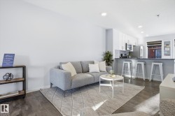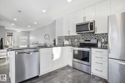 Welcome home! This pet-friendly END UNIT townhome on a corner lot is ideal for first-time buyers or those entering the rental market. Both spacious bedrooms feature their own ensuite bathrooms. The bright, modern, and stunning kitchen boasts matching stainless steel appliances, granite countertops, porcelain white cabinets, and fresh paint throughout the main floor. Rich vinyl plank flooring and large vinyl windows create a warm, inviting space with no shortage of natural light! The tandem garage accommodates two cars plus storage and you'll have plenty of visitor parking right outside your door! The location? Couldn't be any more perfect! You've got walking trails any direction you choose, ample shopping nearby, schools, public transit, and more! Whether you're a couple, a fur-parent, or a small family... this is the home for you!
