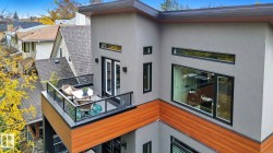 CUSTOM BUILT home with Legal 2-Bedroom Suite in the Heart of Garneau! Just ONE BLOCK from the University of Alberta, Whyte Avenue. Thoughtfully designed and meticulously finished, this home features Central A/C, Eco-Shield Argon windows, and an open-concept main floor filled with high-end custom finishes. showstopper kitchen with Bosch appliances, a waterfall quartz island and backsplash, and a walkthrough pantry with coffee bar. Upstairs, you'll find three bedrooms plus a vaulted den, including a luxurious primary suite with private second-floor balcony overlooking a beautiful, mature tree-lined street. The fully legal 2-bdrm BASEMENT SUITE features a PRIVATE ENTRANCE, its own laundry, and a full kitchen—ideal for rental income or multi-generational living. Additional highlights include a custom-built aluminum front porch, double detached garage, and a south-facing, professionally landscaped, low-maintenance yard.