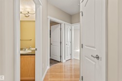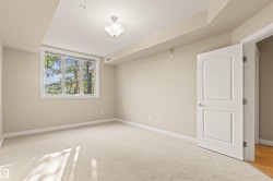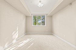 18+ living at its finest! Amazing home in a pet friendly, well managed, secure building with a healthy reserve fund! New carpets & new paint throughout give this 2 bed / 2 bath home a fresh new feel! Enjoy a main living area with maple kitchen, maple hardwood floor, S/S appliances, 9 foot ceilings, central A/C & cozy corner gas F/P. The primary suite has walk through his & her closets & a 3 piece ensuite. The good size 2nd bedroom, 4 pc main bath & in suite laundry room with ample storage space, complete the home. Spacious covered patio with view of a park is great for relaxing & very convenient for walking the dog(s). The extensive list of amenities includes a fitness center, guest suite, social room, meeting room, library, sauna, steam room, bike storage room & car wash bay. There is in suite storage plus an additional storage locker in front of your heated underground parking stall. Quiet location, close to walking/bike trails, parks, shopping, Anthony Henday & future Capital Line LRT station.