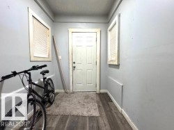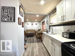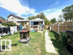 Calling Investors & Starter Home Buyers! This single detached house situated in the convenient location with only minutes to public transp/schools/shopping/Royal Alex Hospital/downtown/97 st/Yellowhead trail & all amenities. Main floor boasts 871 sf greets you with good-sized living room & dining area. White-color Kitchen cabinets. 2 bedrooms and a 4 piece bathroom. Plus additional upper floor attic space of 237 sf (not full height). Basement is laundry area & utility room, not full height ceiling but the extra spaces could be use as storage room. Front & rear enclosed porches with large deck overking to landscaped & fenced yard. Back alley access for high potential future garage build. Upgrades within 5 years: vinyl plank floorings/painting/kitchen cabinets/backsplash tiles/quartz counters/plumbing/electrical/high efficiency furnace & 5 tele-posts in the basement supporting the main beam. Don't miss out on this great opportunity to make this house YOURS!