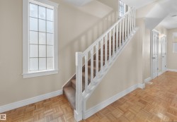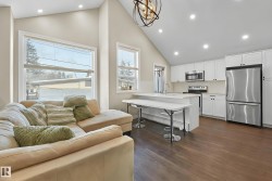 GARAGE SUITE! Exceptional find in one of Edmonton's most desirable neighborhoods! Two independent residences sharing a single lot, perfect for extended families, rental income strategies, or hands-on property owners. The lot includes a classic 3 bedroom, 1.5 bathroom traditional house complemented by a 890 sq/ft premium 2 bedroom 2 bathroom garage suite (approx $235k). This secondary unit showcases cathedral-style ceilings, generous windows, an expansive lounge, modern kitchen w/ Kitchen Craft cabinets & quartz surfaces, outdoor terrace, primary suite w/ private 3pc washroom and custom storage, upper-level laundry, plus a ground-floor bedroom w/ adjacent full bathroom. Climate-controlled parking bay included. The original dwelling provides sun-filled common areas, practical cooking space, powder room downstairs, and three sleeping quarters sharing a renovated four-piece bathroom upstairs. Recent High Eff furnace & newer sewer. Moments from McKernan Park, McKernan schools, retail, and LRT, & Uofa Campus.