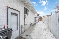 Accessible Living in Rundle Heights. Discover this versatile Half Duplex, perfectly designed for multi-generational living or those seeking comfort and accessibility. The main floor features 3 bright bedrooms and has been thoughtfully retrofitted for mobility assistance, boasting some widened door frames and a main bathroom equipped with a specialized walk-in tub. Access is made easy with a sturdy wheelchair ramp installed at the front entrance. The fully finished lower level offers a private retreat, set up ideally as a mother-in-law suite. This space includes a generous living room, a 4th bedroom, a second full bathroom, and a functional kitchenette—perfect for extended family or guests. The exterior features a Double Detached Garage with back lane access. Located in a nature-loving community, you are moments away from the River Valley, Rundle Park, local golf courses, and schools. A rare find combining accessibility, space, and a fantastic location!
