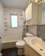 Sitting on a large 50'x150' lot, on a quiet tree lined street in Inglewood, this renovated & upgraded bungalow, with vinyl windows & recent shingles, is a great find. 2 nice sized bedrooms on the main floor, with large windows, & hardwood floors. The master easily supports large bedroom furniture. The living room and kitchen are truly open spaces. Again, the large windows let in nice natural light, and the modern kitchen has full height cabinetry, a great stainless appliance package with a gas stove, French door fridge, undercabinet lighting, & a glass tile backsplash. Fully finished basement with a large rec room, a 3rd bedroom/flex area, & a full walk up wet bar with a fridge, perfect for snacks & refreshments while enjoying your family or home theater time. Huge rear yard with a 16'x29' deck makes for a great 3 season hangout. The yard size is impressive, and will catch your attention. An older oversized single garage sits at the rear, with a gate for additional or RV parking. Pack your bags.