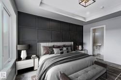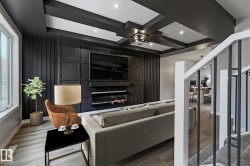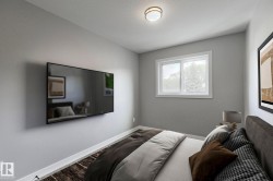 CUSTOM-BUILT SHOW HOME FOR SALE! This stunning duplex offers 3 spacious bedrooms, 2.5 baths, a bonus room, & a SIDE ENTRANCE, all thoughtfully designed for modern living. The main floor is truly a showpiece, featuring a striking floor-to-ceiling custom feature wall w/3D fireplace, an elegant buffet bar, & 9-ft ceilings throughout. The beautifully appointed kitchen, complete w/s.s appliances, is perfectly positioned at the rear of the home and flows seamlessly into a generous dining area & expansive living room. Upstairs, the spacious primary retreat impresses w/ a full ensuite, large closet, & designer feature wall, while the additional bedrooms & bonus room provide flexibility for families or professionals. The 9-ft ceiling basement offers a separate side entrance & is roughed-in for a future legal basement suite or ideal Airbnb opportunity. Located just minutes from Westmount Shopping Centre, major hospitals, UofA & Macewan Uni. Move-in ready, fully landscaped & DOUBLE GARAGE. NO condo fees or HOA fees.