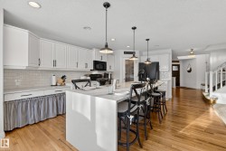 As you step through the front door of this stunningly upgraded 4 bed, 3.5 bath home you are welcomed by a bright living room which leads into the fully renovated kitchen featuring a quartz island, updated backsplash, and ample cabinetry which seamlessly connects to the dining area. Off the dining area is a family room. Upstairs offers well sized bedrooms and beautifully remodeled bathrooms with a modern, cohesive feel and the convenience of upstairs laundry. The professionally finished basement adds valuable living space with built in cabinetry, a bar fridge, dishwasher, and a striking 90 gallon fish tank, perfect for relaxing or hosting guests. Thoughtful upgrades in the home include new carpet throughout, central air conditioning, a water softener, and a new hot water tank. Outside the backyard impresses with an exposed aggregate patio, garden shed, dog run, and gem lights, which is all complemented by new shingles (2024), and an insulated and heated garage for year round comfort and convenience.