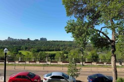 River Valley & City Views! 1,371 Sq.Ft. Private Full-Floor Condo. Enjoy stunning views from this beautifully renovated condo in River Cliff Place, an exclusive 5-unit building on the Promenade. Occupying the entire main floor with direct elevator access, this bright, open-concept home features floor-to-ceiling south-facing windows, luxury vinyl plank flooring, a gas fireplace, and kitchen with tons of cabinetry, granite counters, peninsula with pendant lighting, and stainless steel appliances. The spacious primary suite includes a custom walk-in closet and ensuite with double sinks and deep tub. Versatile den could serve as a second bedroom. Includes in-suite laundry, guest bath, attached parking, and storage locker. Steps from trails, dining, galleries, and the Brewery & Ice Districts—urban living at its finest!