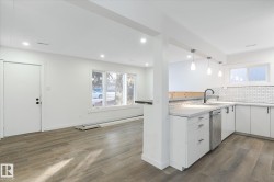 Freshly renovated 3 bedroom bungalow! Step into the front entrance and be greeted by a generous sized living room with new flooring and pot lighting. The kitchen has been opened up and updated, ideal for the chef. The sharp bright kitchen has been tastefully updated with new cabinet doors, hardware & countertops. Nicely equipped with stainless steel appliances and pendant lighting. The bathroom has also been upgraded from top to bottom. There are three bright bedrooms including a master which faces out onto the private yard. Perfect for entertaining, or just enjoying some quiet time, the backyard has a pergola and extensive stone work. Other features include a high efficient furnace, double garage with back lane access. All of this on a 50' wide lot with possibilities for future development.
