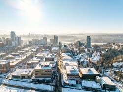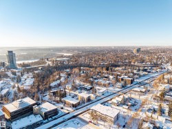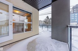 *Discover The Best Priced Condo at High Street District Properties**: a fresh and modern development nestled in the heart of Downtown Edmonton. Ideally situated just one block away from the esteemed 124 Street, ICE DISTRICT & THE FAMOUS BERWEY DISTRICT ON 104 Ave . STEP INSIDE THIS LARGER CORNER END UNIT and you are greeted by an upgraded kitchen with granite counter-tops and a larger living room with stunning hardwood flooring along with a 2 pice guest bathroom, along with a generous dining area and/or unique flex space off the living room. The Huge Wrap Around Patio is ideal for entertaining guests or enjoying a quiet evening outdoors. he master bedroom boasts additional windows for natural light, a walkthrough ensuite bath, and an impressively large walk-in closet. A Huge Bonus is the Underground Titled Heated Parking Stall. Stall along with a GREAT ROOF-TOP PATIO. THIS UNIT IS BY FAR THE BEST PRICED IN THE COMPLEX. "VIEW TODAY"!