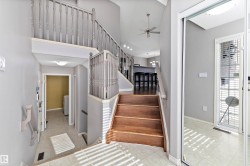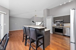 A rare find! Well-kept home tucked away on a quiet street in sought-after Creekside Terrace, offering a private setting just off the ravine. The welcoming entryway features a large closet, & just down the hall is a spacious laundry room. An open-concept layout includes a bright living room w/ vaulted ceiling & generous kitchen w/ raised eating island, pantry, ample cupboard & counter space, & new appliances. The large dining nook can easily accommodate gatherings w/ family & friends & opens to a large back deck w/ gazebo & semi-private yard space. Upstairs offers a spacious primary bdrm w/ double doors, 2 mirrored closets, & full ensuite. A 2nd bdrm & another full bath w/ stand-up shower completes this level. The unspoiled basement has tall ceilings & ample light, ready for your personal development. Additional features include oversized driveway & large double garage. Condo fees include internet & use of community amenities building. Ample visitor parking. Some photos may be virtually staged.