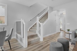 Our popular Birch is a Duplex Home with Double Attached Garage Located on Cristall Way, Chappelle’s Newest (and Most Accessible) Area. Steps From Chappelle’s Outdoor Gym, Walking Trails, Pond and 2 Large Commercial Spaces. This home boasts a West Facing Backyard, Perfect for Natural Light in the Evenings. Enclosed Side Entrance (Exterior Landing Included). Upgraded Kitchen Package Including a French Door Fridge w/ Internal Ice and Water, Dishwasher, Electric Range, and Over the Range Microwave. Cozy up in your living room with a Modern Electric Fireplace. Enjoy or work from the Main Floor Flex Room with Swing Door. 3CM Quartz Countertops with Undermount Sinks Throughout. Additional rec space in the upper floor bonus room. Photos of showhome.