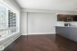 Motivated seller! Great opportunity for this priced-to-sell, spacious home with NE view, in-suite laundry, underground heated parking, visitor parking, and bike storage room. The beautiful kitchen features a BREAKFAST BAR, STAINLESS STEEL APPLIANCES, QUARTZ COUNTERTOPS, and lots of STORAGE. The OPEN-CONCEPT living / dining room leads to a generous BALCONY with gas hook-up. Enjoy lots of CLOSET SPACE in the bedroom and large utility room that includes a full-size stacking washer and dryer. This well-maintained property includes HARDWOOD FLOORS, large BRIGHT windows, and HUNTER DOUGLAS coverings throughout. Enjoy living in the secure, well-managed, PET-FRIENDLY Icon II while embracing the convenience and buzz of downtown living. Priced to entice!!