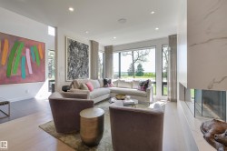 Elevated Architecture Meets the River’s Edge: On prestigious Ravine Drive, where the city blends with the beauty of the river valley, sits this thoughtfully designed luxury home. Bathed in southern light and poised above the trees, this architectural triumph by award-winning visionary Rick Arndt was conceived to harmonize with its surroundings and offer unparalleled comfort. Over 5,500 square feet of curated living space: 4 bedrooms plus an office, 6 bathrooms, and a rooftop terrace that blurs the boundary between interior and sky. Here, a wet bar awaits sunset cocktails. Natural light bathes the chefs kitchen, the living room, & the luxurious primary suite. A two-storey family room with an exquisite book-matched natural stone fireplace enjoys an entire wall of windows & overlooking the private yard with outdoor kitchen area. Crafted by Urbis Developments—whose name is synonymous with integrity, precision, & excellence. Triple garage. Landscaped grounds. Elevator-ready. Timeless, yet unmistakably modern.