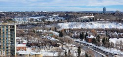 Perched high above the river valley, this renovated 1-bedroom condo blends modern style with spectacular views. The kitchen has been redesigned with updated cabinetry and modern details, while the bathroom is fully redone with a sleek, contemporary look. Luxury vinyl plank flooring flows throughout, creating a seamless and inviting feel. Expansive new windows and patio doors frame panoramic river valley views, filling the home with natural light. The open living and dining area is bright and welcoming, and the spacious bedroom easily fits a king-sized bed. Step onto the private balcony to take in breathtaking scenery—perfect for morning coffee or quiet evenings. This well-managed building offers excellent amenities, including a fitness room, games room, and rooftop basketball and tennis courts, plus secure underground parking. A stylish retreat in the heart of downtown with scenery that is hard to match.