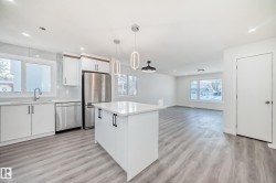 Welcome to this beautifully renovated bungalow duplex offering over 1,900 sq. ft. of bright, open living space with 5 bedrooms. The main floor features a brand-new kitchen with a large island, spacious dining area, and a stunning great room with a new tiled fireplace. You’ll also find three bedrooms, a stylish 4-piece bathroom, and convenient main-floor laundry. The fully developed basement adds exceptional flexibility with a second kitchen, 4-piece bathroom, laundry room, and two large bedrooms—perfect for extended family or additional living options. With over $100K in upgrades and renovations including a brand new roof this home offers it all! Enjoy a generous backyard and an ideal location just steps from Fraser Park, a short walk to the elementary school, and minutes to shopping, restaurants, Manning Town Centre & Clareview Rec Center. Getting around the city is easy being only minutes from Anthony Henday. Move-in ready and fully updated from top to bottom.