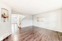 Welcome to this stunning, 1755 sqft, 4 bedrooms, den room, 2.5 bathrooms & a double garage home situated in the desirable community of South Terwillegar! This home offering a bright and spacious main floor, highlighted by a large living room with plenty of windows—perfect for everyday living and entertaining. Gourmet chef's kitchen offers centre kitchen island, adjacent to dining area with lots of windows. Convenient main floor den area & 1/2 bath. The upper level features FOUR generous bedrooms and a full bathroom, providing comfort and functionality for the entire family. Master bedroom boasts walk-in closet & a 3pc ensuite. Additional highlights include a double oversized detached garage and a fully landscaped, fenced yard, your private oasis for relaxation & entertainment. This property combines comfort, convenience, and excellent value—ready for its next proud owner. Easy access to public transp/transit/schools/park/playground/shoppings/Henday Dr & all amenities. Quick possession avail. Don't miss!