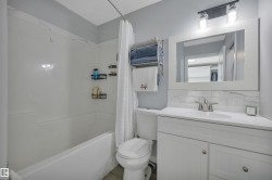 INVESTOR & HOUSE-HACKER ALERT. This versatile property offers a fully self-contained garage suite + future basement suite potential, creating a strong mortgage helper or investment opportunity. The main home features a bright, open-concept layout ideal for everyday living & entertaining. The living room includes a cozy fireplace & flows into the dining area & statement kitchen w premium s/s appliances, including full-size standing fridge & freezer, gas cooktop, built-in oven, microwave & D/W. Navy cabinetry, quartz countertops, & a walk-in pantry complete the space. A convenient powder room & rear yard access lead to the low-maintenance composite deck & oversized double garage. Upstairs, the primary retreat includes a walk-in closet & 4-pc ensuite, + 2 additional bedrooms, bonus room, full 4-pc bath, & 2nd-floor laundry. The garage suite includes a 2nd kitchen, living area, bedroom, 4-pc bath, laundry, & Murphy bed. Separate side entrance allows future basement suite potential. Value & versatility.