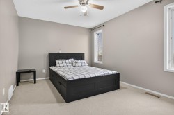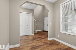 Located in the family-friendly community of Carlton, this well-maintained 3-bedroom, 2.5-bath half duplex offers comfort, updates, and functionality with no condo fees. The main floor features brand newer vinyl plank flooring and a recently installed high-efficiency furnace. A spacious den off the front entrance provides the perfect space for a home office or flex room. The bright kitchen offers ample counter space, stainless steel appliances, and a generous dining area ideal for family meals. Upstairs you'll find three bedrooms, including a primary suite with full ensuite and walk-in closet. The partially finished basement is framed, includes two large windows, and already has a 3-piece bathroom installed. Step outside to enjoy the fenced backyard with a large wood deck and concrete patio, perfect for entertaining. A single attached garage and additional driveway parking add convenience.
