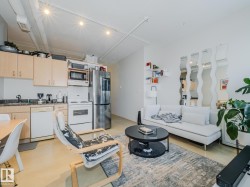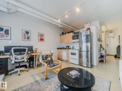 Discover modern urban living in this stylish loft-style condo located in the heart of downtown Edmonton. Designed with soaring ceilings and expansive windows, this open-concept space blends industrial charm with contemporary comfort. Exposed concrete accents, warm natural light, and a flexible floor plan create a bright and inviting atmosphere perfect for both relaxing and entertaining. The sleek kitchen features stainless steel appliances and ample counter space, flowing seamlessly into the spacious living area. A lofted bedroom provides privacy while maintaining the home’s airy appeal, and in-suite laundry adds everyday convenience. Step outside and enjoy immediate access to Edmonton’s top restaurants, cafés, the Ice District, transit, and the scenic river valley. With secure building access and an unbeatable central location, this condo offers the ideal blend of style, function, and urban convenience—perfect for professionals, first-time buyers, or anyone seeking vibrant downtown living.