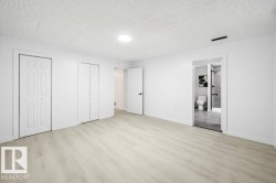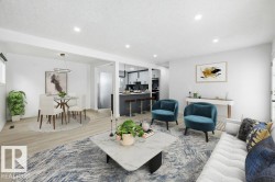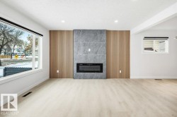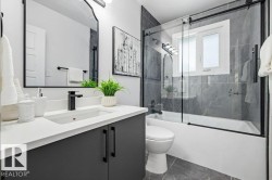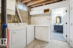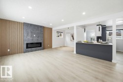Welcome to Elmwood and this stunning, fully renovated 4 bed 2 bath open-concept bungalow. Designed for both comfort & style, this home is completely transformed & thoughtfully updated throughout; the home features: luxury vinyl plank flooring, new windows, modern baseboards & trim, upgraded interior doors, striking feature-wall fireplace, stylish lighting, fresh paint throughout, custom cabinetry, beautifully renovated bathrooms w/new vanities/sinks, elegant quartz countertops & sleek zebra blinds. Enter the show-stopping kitchen featuring two-toned matte cabinetry, SS appliances & impressive 76” quartz island ideal for gatherings & everyday living. 3 sizeable bedrooms & elegant 4pc bath. Fully finished basement w/ additional bedroom & gorgeous walk-through attached bathroom provides the perfect space for entertaining, relaxing, or hosting guests. Exterior upgrades complete the look w/freshly painted stucco, new siding, roof (2022), landscaping & refreshed garage. Just move in & enjoy!