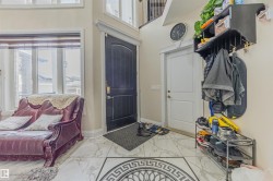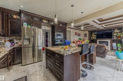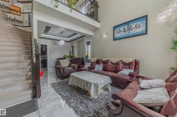 Custom-built Mcconachie treasure 5 bed, 4 full bath, 2546 sqft home designed for functionality! Step into a grand foyer w/ soaring double-height windows & an open-to-below design. Throughout, find beautiful millwork, including coffered ceilings, custom wall detailing, built-in cabinetry & panelled accents. The main floor boasts a dining room, two living areas—one w/ a NG fireplace—flowing into a chef’s kitchen w/ espresso cabinetry, glass inserts, granite countertops & large island. Patio doors open to a spacious deck & fenced yard. A main-floor bedroom w/ custom wall detailing & full 4-piece bath is perfect for guests or multi-generational living. Upstairs is a dream for large families, featuring versatile loft/bonus area & 4 spacious bedrooms all w/ walk-in closets. Primary suite impresses w/ dual walk-in closets & 5-piece ensuite w/ a soaker tub, dual sinks & a walk-in shower. Second bedroom w/ its own 4-piece ensuite offers added privacy & convenience. All this + separate basement side entrance!