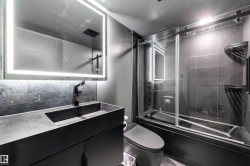 Enjoy elevated top-floor living in this fully renovated 1-bed, 1-bath condo—modern, bright, and thoughtfully designed. This unit features all-new stainless steel appliances, quartz counters, upgraded lighting, and a refreshed open layout that feels spacious and inviting. The spa-inspired bathroom includes a steam shower and smart toilet, offering rare luxury at this price point. A/C keeps the space comfortable year-round, and the balcony provides a quiet spot to unwind. The building is pet-friendly and Airbnb-friendly with great amenities including a pool and fitness area. Located steps from groceries, restaurants, transit, 124 Street boutiques, parks, and nearby schools, this move-in-ready condo is perfect for first-time buyers or savvy investors who want style, convenience, and excellent value.
