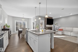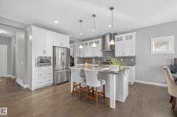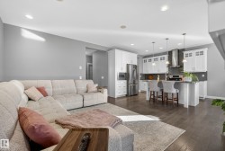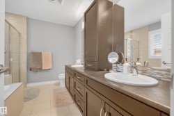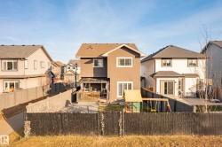 Backing onto greenspace in the award-winning community of Cy Becker, this custom-built 2-storey impresses from the moment you step inside. A spacious foyer opens to a bright floor plan with 9’ ceilings and rich oak hardwood. The living room features a gas fireplace with stone surround, flowing into the chef-inspired kitchen with modern cabinetry, quartz countertops, stainless steel appliances, eat-up island, and a walk-through butler’s pantry. The dining area leads to your private deck with peaceful views. Upstairs, enjoy a vaulted bonus room, three generous bedrooms, a 4-piece main bath, and upper-floor laundry. The primary suite features an electric fireplace, walk-in closet, & spa-like 5-piece ensuite with soaker tub and glass shower. Additional highlights include A/C, built-in Sonos speakers in key rooms(wifi receiver incld), & tankless hot water. The basement is laid out and ready for your finishing touches. Trails, playgrounds, parks, & amenities are just steps away—this is a perfect family home.