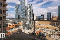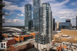 Brand new, never lived in! Perched on the 17th floor with stunning southwest views, this corner unit in Fox Two offers the perfect blend of style, comfort, and location. With 2 bedrooms, 2 full bathrooms, and an open-concept layout, it’s designed for modern urban living. The sleek kitchen features stainless steel appliances, a large island, and stylish finishes, flowing into a bright living space ideal for entertaining. Enjoy year-round sunsets, fireworks from Rogers Place, and views of the Don Wheaton YMCA from your private covered balcony. Located on vibrant 104 Street—home to farmers markets, dining, and festivals—and steps to the Ice District, Brewery District, and the new Valley Line LRT. Includes A/C, in-suite laundry, secure underground parking, and a Bluebox locker system. Downtown living at its best!