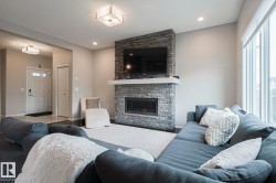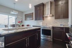 GORGEOUS EXECUTIVE HOME in desirable Cy Becker! This stunning 2 storey offers a blend of modern luxury and family comfort, featuring A/C, designer lighting, and quality flooring throughout. The bright open layout showcases a chef’s kitchen with granite counters, stone backsplash, high-end stainless appliances, an island with breakfast bar, and stunning full-height dark cabinetry with loads of extra storage. The sunny dining area opens to a large composite deck with glass railings ($35,000 upgrade). The inviting living room features a striking stone fireplace and huge windows that fill the home with natural light. Upstairs you’ll find a spacious bonus room, family bath, and 3 bedrooms including a beautiful primary suite with walk-in closet and a spa-inspired ensuite with custom tile and glass shower. The curb appeal continues outside with a large fenced yard, double garage & full sized lot. Close to parks, great schools, and shopping—this is the perfect family home in a fantastic community!