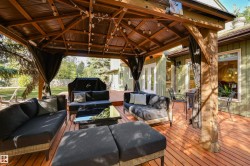 West Coast style on a MASSIVE LOT in a quiet cul-de-sac! This BEAUTIFULLY UGDRADED 2-storey offers 4+1 bedrooms, 3.5 baths, and a layout designed for both comfort and entertaining. The main level features a welcoming living room with stone-faced fireplace and WOOD CLAD VAULTED CEILING flowing into a spacious dining area w/views of the deck and yard. The modern renovated kitchen includes a walk-through pantry to the laundry/mudroom, while the cozy family room with gas fireplace adds the perfect gathering space. Upstairs, the EXPANSIVE PRIMARY SUITE boasts a spa-inspired ensuite and PRIVATE BALCONY, complemented by three additional bedrooms, a fully renovated bath, and a bright office. Fully renovated basement offers a large recreation space, gym/bedroom, and full bathroom, extending the home’s versatility. Outdoors, the massive yard features a LARGE DECK, GAZEBO, and SPORT COURT for relaxation and play. A double attached garage, A/C, ETHERNET, and prime cul-de-sac location complete this exceptional home.
