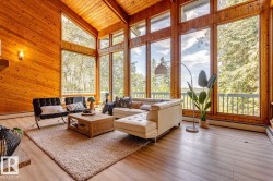 Unmatched development opportunity in one of Edmonton’s most prestigious river valley corridors. Set on 5 gated acres with panoramic views of the North Saskatchewan River Valley and Windermere Golf Club, this elevated parcel offers rare privacy and natural beauty. The 3900+ sq ft rustic mountain-style home features vaulted ceilings, timber accents, a walk-out basement, and renovated primary ensuite. Ideal for renovation, expansion, or full redevelopment—create a signature estate, luxury compound, or generational retreat. A July 2025 geotechnical report confirms slope stability and supports new construction at the current building site, offering builders confidence to proceed. Mature trees, open lawns, and forested trails surround you—yet you’re minutes to Windermere’s elite schools, shops, and golf. Includes triple garage, barn/studio, and endless outdoor potential. A truly rare offering for visionaries seeking privacy, prestige, and architectural possibility.