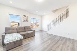 NORTH F.Welcome to this stunning 3 bedroom, 2.5 bathroom corner townhouse with an attached double car garage, located in the highly sought-after community of Laurel. Perfectly situated directly across from Svend Hansen Public School and just steps from a bus stop. Enjoy being within walking distance to Indian grocery stores, shopping plaza, gas station, restaurants, and all essential amenities. The main floor features a functional open-concept layout with a bright living room, a spacious dining area, and a modern kitchen with quartz countertops, tile backsplash, stainless steel appliances, and a good-sized pantry for extra storage. Upstairs, the primary bedroom includes a 3-piece ensuite and a walk-in closet, while the two additional bedrooms are generously sized and share a full bathroom. Additional features include upstairs laundry, modern finishes throughout, and a low-maintenance lifestyle in a well-managed complex. This is a perfect opportunity for first-time buyers or investors, Don't miss it out!!!
